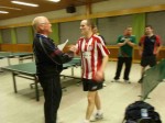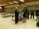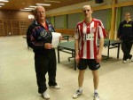Um kurz vor 1.oo Uhr stand der „neue“ Vereinsmeister fest. Und nein, Ihr lest richtig. In der Einzelkonkurrenz ist es diesmal nicht die Nr. 1 des TTC, Tim Lindner. Tim gelangte zwar wieder ins Finale, unterlag hier in 5 Sätzen Benjamin Daniel, unserem Auslandskorrespondenten des ZDF :-)) und musste sich mit dem Titel des Vizemeisters zufrieden geben. Wie bereits im Vorjahr, konnte sich Benny mit den Vorgaben durch die Gruppen kämpfen und auch im Viertel- u. Halbfinale bestehen. GLÜCKWUNSCH zur Vereinsmeisterschaft !!